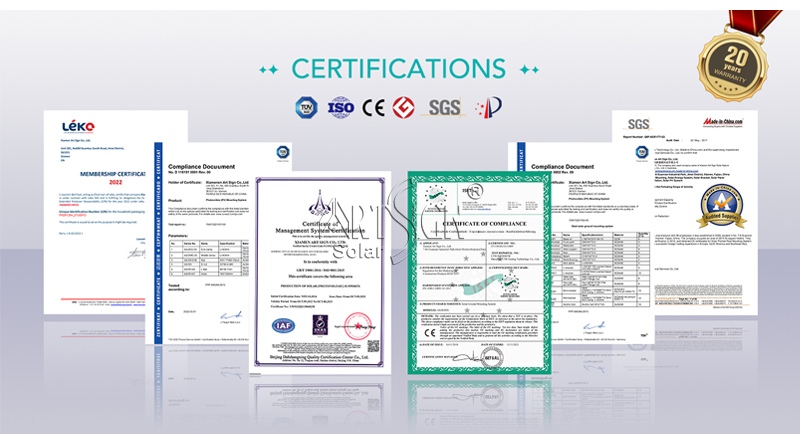 Art Sign est convaincue qu'une infrastructure solaire fiable est essentielle à un avenir plus vert. En proposant des solutions de montage innovantes et performantes, nous visons à rendre l'énergie solaire plus accessible, efficace et durable pour les communautés du monde entier.